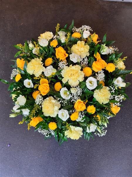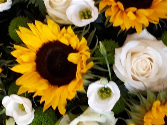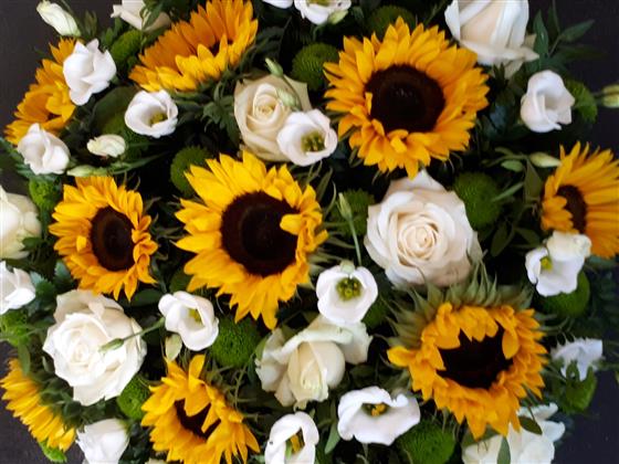 Bright sunny tribute, Roses, Carnations Lizzy make up this sunshine tribute.