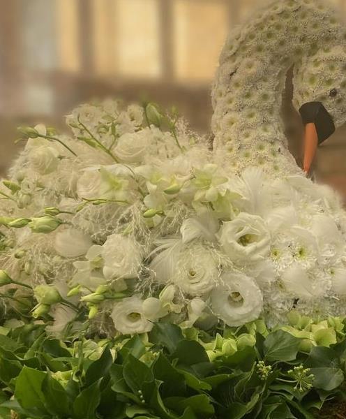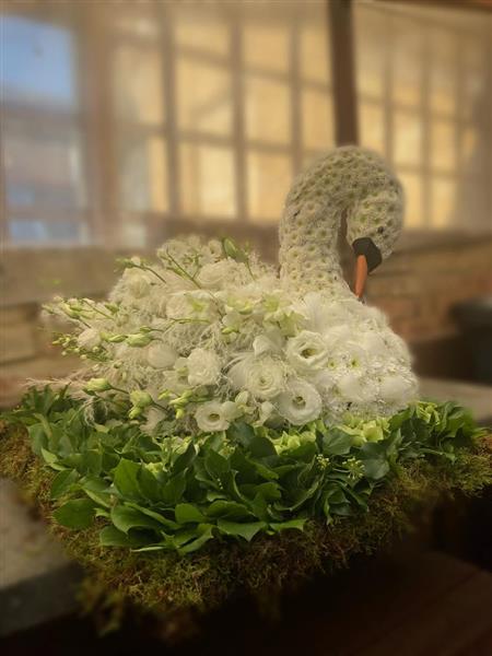 A beautiful swan tribute, filled with Orchids and lizzy which finishes of this gorgeous tribute for a loved one.